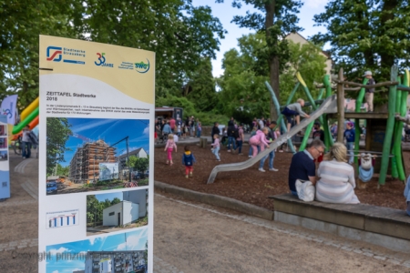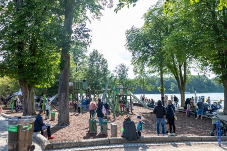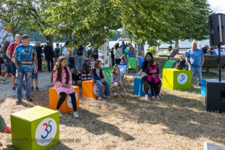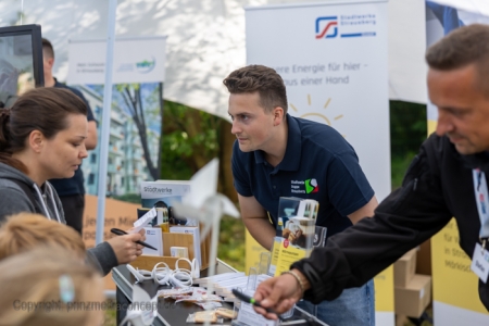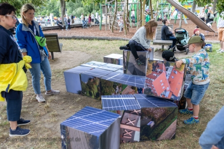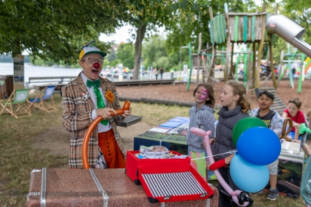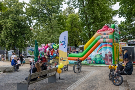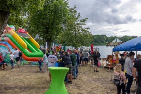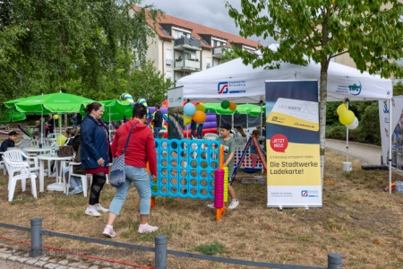 Das Eventgelände rund um den Seespielplatz bietet zahlreiche Aktivitäten: Von Hüpfburgen bis hin zur kreativen Bastelstrecke ist für jedes Kind das Richtige dabei. Besonders spannend sind die interaktiven Experimente an den Ständen der Stadtwerke und der Wohnungsbaugesellschaft – zum Staunen und Mitmachen!