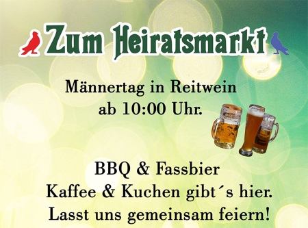 Der Eventgasthof zum Heiratsmarkt in Reitwein lädt am Männertag (29.05.2025) ab 10:00 Uhr nach Reitwein ein. Die Location kann besichtigt werden und natürlich wird gefeiert.