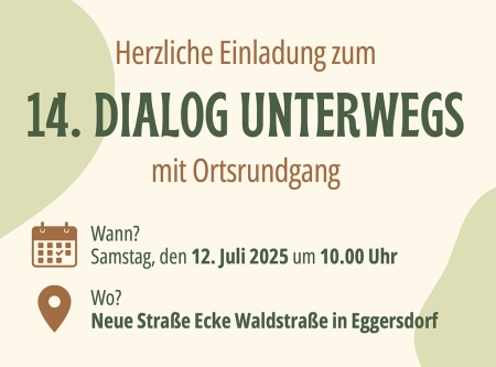 Am Samstag, den 12. Juli 2025, lädt Johannes Kliegel erneut zu einem offenen Ortsrundgang durch Eggersdorf ein. Treffpunkt ist um 10:00 Uhr an der Ecke Neue Straße / Waldstraße.