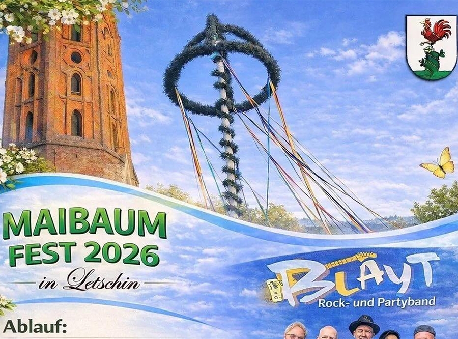 Am Donnerstag, den 30. April 2026 findet ab 14:00 Uhr das Maibaum Fest 2026 in Letschin (Karl-Marx-Straße 5) statt.