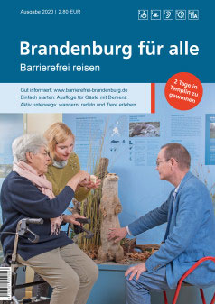 Viele dieser Angebote präsentiert die 100 Seiten starke Broschüre „Brandenburg für alle. Barrierefrei reisen“ 2020. Ergänzt werden die Angebote mit Artikeln von Rollstuhlfahrern, die über ihre Ausflüge und Erlebnisse zum Beispiel in Angermünde und Brandenburg an der Havel berichten.