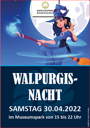 Zur traditionellen Walpurgisnacht treffen sich die Rüdersdorfer im Museumspark, darunter Hexen und Teufel, um das traditionelle Frühlingsspektakel zu feiern. Am Samstag, den 30. April 2022 ab 10 Uhr öffnet der Museumspark für das reguläre Programm, von 15 Uhr bis 22 Uhr wird dann aus dem Museumspark ein Hexentanzplatz.