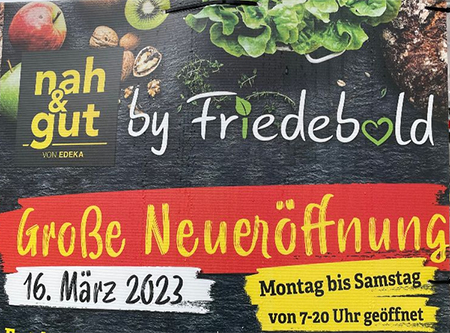 Am Donnerstag, den 16. März 2023 eröffnet Familie Friedebold das neue nah & gut Lebensmittelgeschäft in der Strausberger Altstadt. Nachdem das Geschäft am 30. September 2022 von der langjährigen Inhaberin Heiderose Schulze übernommen wurde, wurde es jetzt in drei Wochen komplett umgebaut. Die Kunden können sich auf ein deutlich erweitertes Angebot freuen.