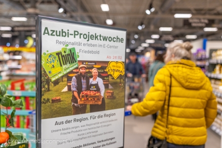 Die Azubis vom E-Center Friedebold in Strausberg haben eine regionale Woche vom 23. bis 28. Februar 2026 für ihre Kunden organisiert. Von Montag bis Mittwoch haben sie mehrere Produktionsstätten und Lieferanten in der Region besucht. Am Montag wurde die Imkerei „Lahres“ in Garzau besucht, am Dienstag wurden die Molkerei „Lobetaler“ in Briesental und „Gut Hesterberg“ in Neuruppin besichtig, am Mittwoch wurde die „Hohensteiner Landfarm“ und „Mampe“ in Berlin besucht. Von Donnertag bis Samstag gibt es verschiedene Stände der besuchten Produktionsstätten im Markt. Alle Kunden können hier von den Produkten kosten. Die Azubis können Ihnen auch viel Interessantes über die Produktionsstätten und den Produkten erzählen. Am Freitag den 27. Februar 2027 können Sie 15:30 Uhr an einem Bingospiel teilnehmen und ein Gutschein für ein gratis Mittagessen aus dem Gastronomie-Bereich gewinnen. Eine Teilnahme kostest 5,00 €. Schauen Sie doch einfach mal vorbei.