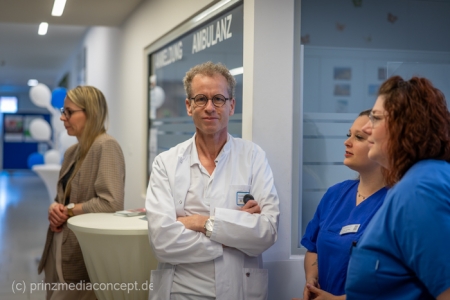 „Die Zertifizierung des Darmzentrums durch die Deutsche Krebsgesellschaft ist ein großer Erfolgt. Es zeigt, wir haben uns vor 15 Jahren auf den richtigen Weg begeben“, erklärt Georg Bauer, Chefarzt der Klinik für Allgemein-, Viszeral- und Gefäßchirurgie sowie Leiter des Darmkrebszentrums. „An unserem Tag der offenen Tür konnten Besucherinnen und Besucher an verschiedenen Informationsständen in Vorträgen und in Führungen durch medizinische Bereiche einen Einblick in die Arbeit des Darmkrebszentrums bekommen.“