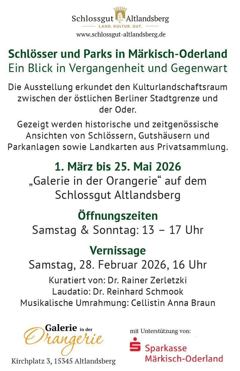 Die Ausstellung ist vom 1. März bis 25. Mai 2026 in der „Galerie in der Orangerie“ auf dem Schlossgut Altlandsberg zu sehen.