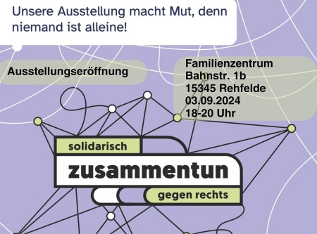 Am 03.09 eröffnen wir die Ausstellung im Familienzentrum. Wir wollen damit die Menschen in Rehfelde und den umliegenden Gemeinden ermutigen, sich für Engagement und Zivilcourage einzusetzen und der rechten Landnahme entgegenzutreten. Unser Ziel ist es, eine Auseinandersetzung über mögliche Zukunftsperspektiven im Hinblick auf die Landtagswahlen in Brandenburg zu fördern. Darüber hinaus geht es um die Stärkung des Gemeinsinns: Wie können wir sicherstellen, dass Märkisch-Oderland eine sichere und inklusive Region für alle sein kann?