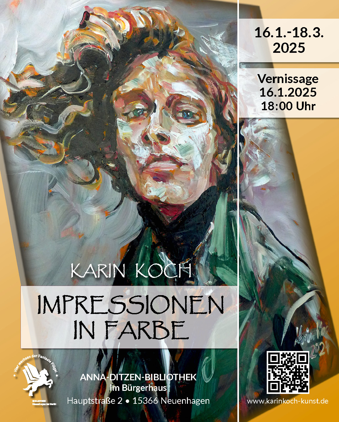 Zur Vernissage der neuen Ausstellung laden wir Sie herzlich ein. Karin Koch präsentiert in der Neuenhagener Bibliothek zum Auftakt des neuen Jahres Impressionen in Farbe.