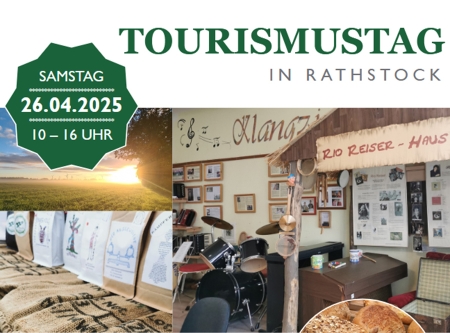 Am 26. April 2025 findet von 10:00 Uhr bis 16:00 Uhr in Rathstock (Alt Tucheband) ein Tourismustag mit Regionalmarkt und kulturellem Programm statt.