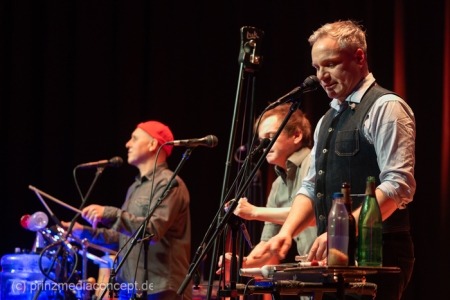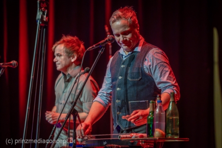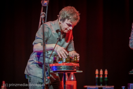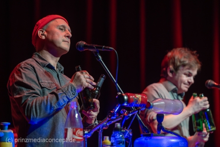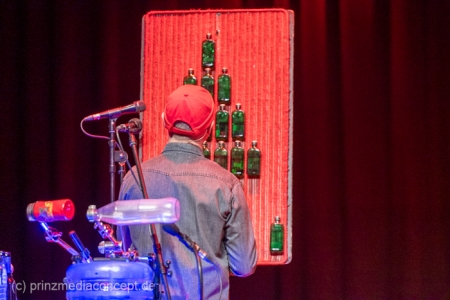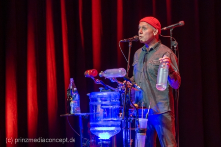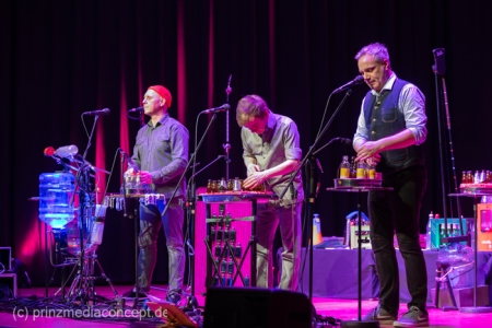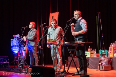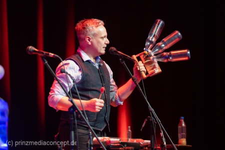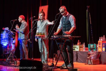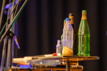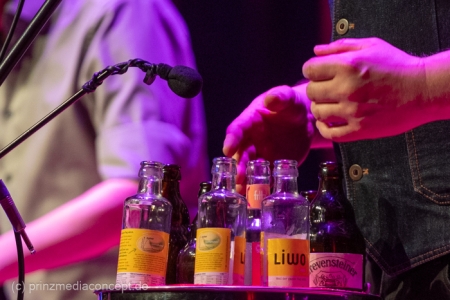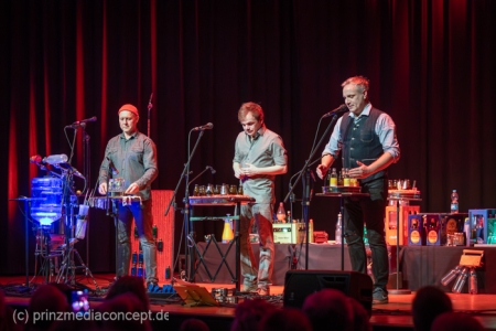 GlasBlasSing die 3 mit den Flaschen, die 0/8/15/25 Cent Band, präsentieren mit „Kästen raus, Flaschenarbeit!“ ihr neues Flaschenmusik Bühnenprogramm. Wie immer auf Pfand gebaut und nicht für Pullenallergiker geeignet. Wieder wird dem vielfältigsten aller Musikinstrumente gehuldigt: Der Flasche. Ihrem klanglichen Reichtum, ihrem rhythmischen Leistungsvermögen und ihrer großen musikalischen Variabilität. All das, wofür Flaschen einst nicht erfunden wurden, steht einmal mehr im Mittelpunkt und setzt dort das Thema. Überraschen, erstaunen , verblüffen. Nach millionenfach um die Welt gegangenen Reels und Tiktoks zeigen Andreas, Fritze und Möhre live noch viel mehr als ihre magischen Plopp Daumen oder die strahlend grünen Jägermeisten Pullen des Flachmanninoffs. Zum Einsatz kommen alle Hochkaräter ihrer opulenten Pullen Flotte. Vom mannshohen Spender Jazzbass bis zur filigranen Jelzin Orgel.