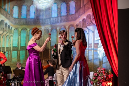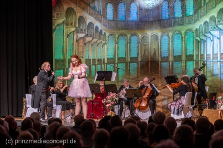 Auch nach über 100 Jahren fasziniert die Operette immer noch mit ihren unvergesslichen Melodien. Ein paar Takte genügen und schon hellt sich die Stimmung auf, man möchte singen, ist einfach hingerissen von diesen Melodien. Genau das tun die Mitglieder des Gala Sinfonie Orchesters aus Prag mit ihrem Können, mit kraftvoller Anmut und romantischer Gefühlsseligkeit, sie entfesseln einen wahren Walzerrausch auf der Bühne. Zusammen mit den international bekannten Solisten, 2 Sopranistinnen, einem Tenor, und dem Johann Strauß Ballett wird die schier überschäumende Melodienfülle der bekanntesten Operettenkomponisten wieder lebendig. Bei letzterem handelt es sich um ein Solistenensemble, das sich aus den begabtesten Tänzerinnen und Tänzern der Staatsoper Prag zusammensetzt und das über einen umfangreichen Fundus herrlicher Kostüme verfügt.
