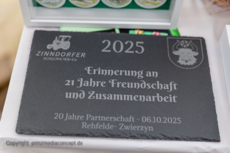 Am Freitag, den 26. September 2025 wurde ab 16:00 Uhr eine Festsitzung zu 20 Jahren Partnerschaft mit Zwierzyn und der 650-Jahr-Feier der Gemeinde Zinndorf abgehalten. Landrat Schmidt und die anwesenden Bürgermeister würdigten die Entwicklung der dörflichen Gemeinschaft auch die Freundschaft zur polnischen Partnergemeinde. Der polnische Bürgermeister fand es schade, dass es zwischen beiden Orten keine direkte Bahnlinie gibt, da würde einiges einfacher gehen. In der nächsten Woche finden die Hauptfeierlichkeiten zum Jubiläum statt.