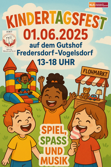 Am Sonntag, den 01. Juni 2025 gibt es von 13:00 Uhr bis 18:00 Uhr auf dem Gutshof Fredersdorf-Vogelsdorf ein Kindertagsfest.