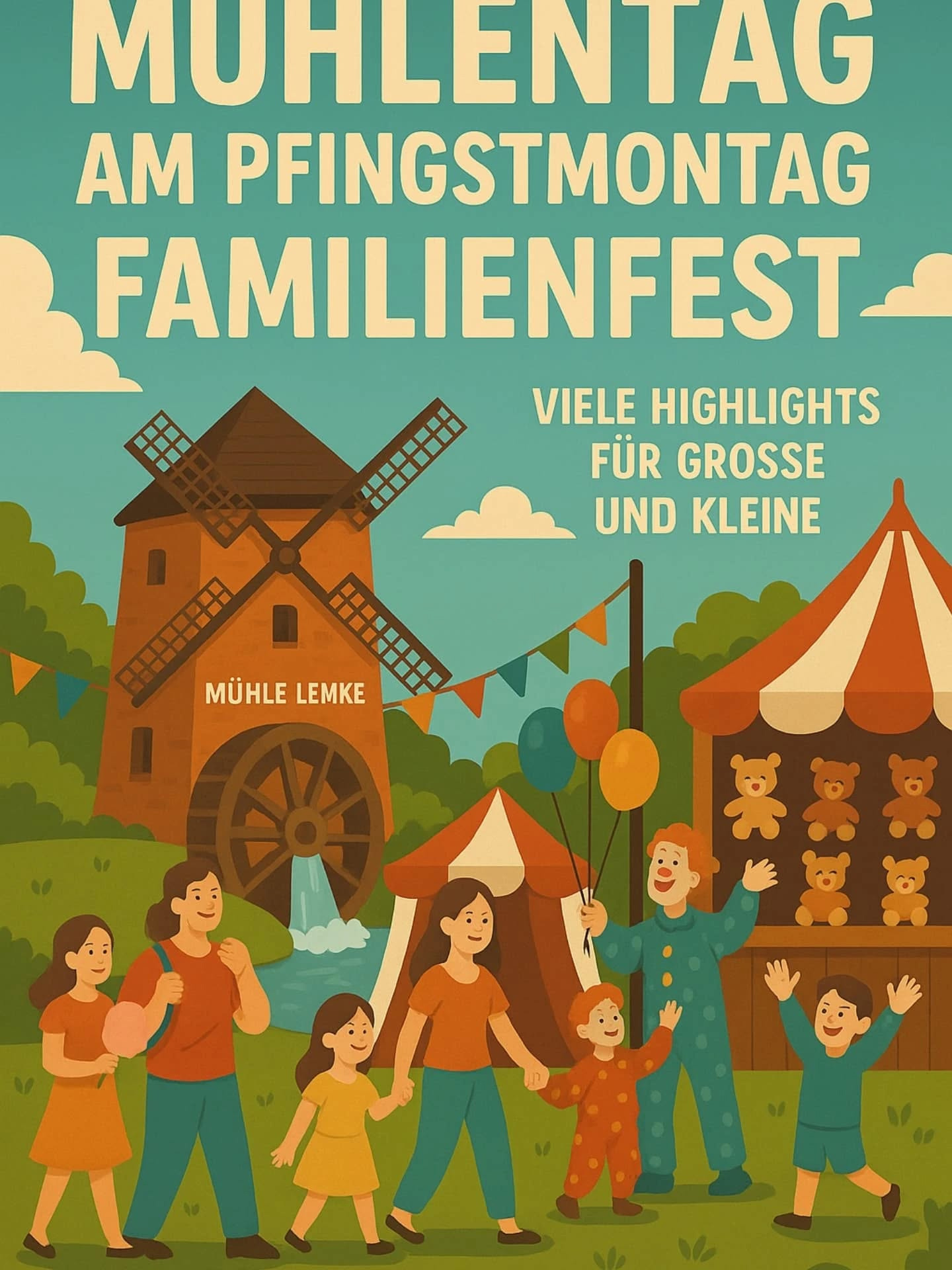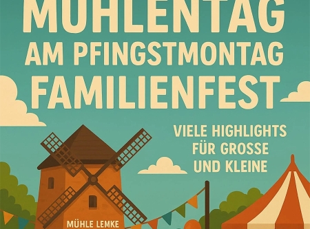 Am Pfingstmontag, den 09. Juni 2025 findet in der Futtermühle Lemke in Hennickendorf der Mühlentag mit Familienfest statt.