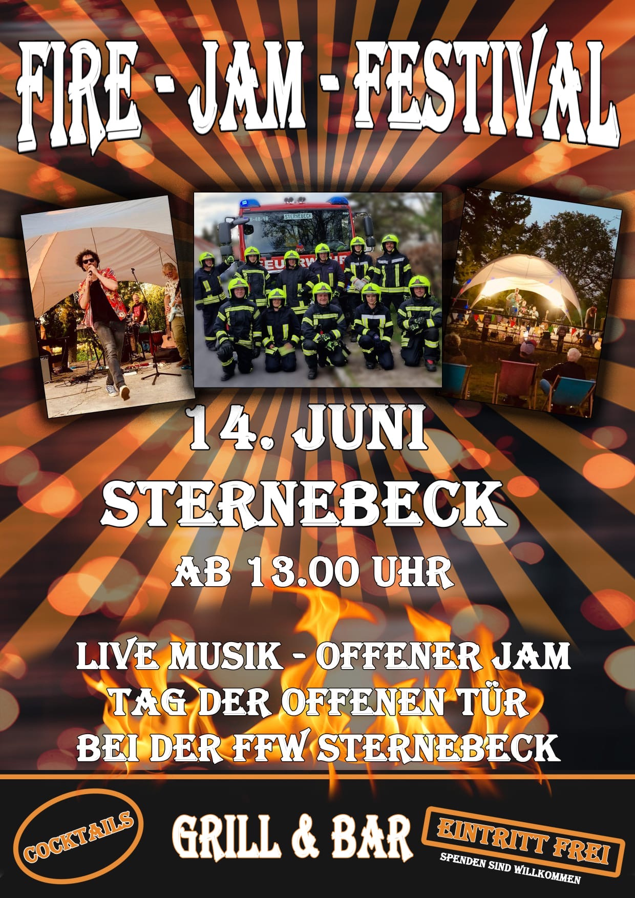 Auch in diesem Jahr steigt im beschaulichen Sternebeck (Ortsteil von Prötzel) wieder unsere sommerliche Jam-Session zusammen mit dem Tag der offenen Feuerwehr-Tür.