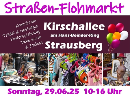 Am Sonntag, den 29.06.2025 findet von 10:00 Uhr bis 16:00 Uhr in der Kirschallee am Hans-Beimler-Ring in Strausberg ein Straßenflohmarkt statt.