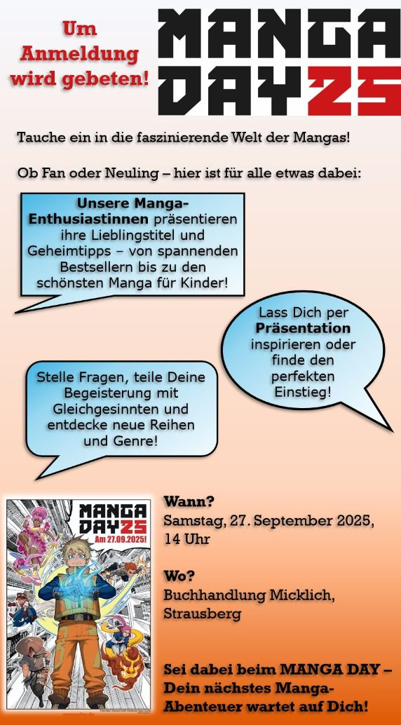 Außerdem legen wir noch eine kleine Veranstaltung obendrauf: Unsere Manga-Fans präsentieren ihre Lieblingstitel und Geheimtipps – von spannenden Bestsellern bis zu den schönsten Manga für Kindern!