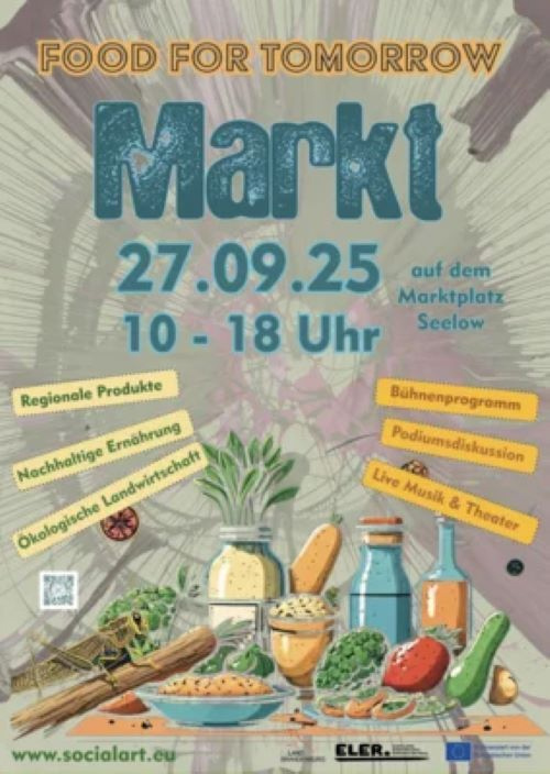 Am Samstag, den 27. September findet von 10:00 Uhr bis 18:00 Uhr der Markt FOOD FOR TOMORROW auf dem Marktplatz in Seelow statt.