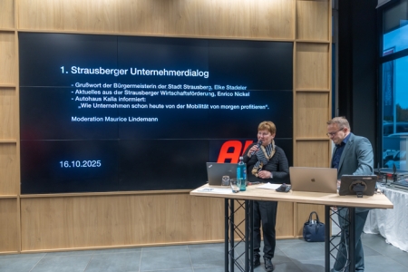 Der erste Strausberger Unternehmerdialog fand am Donnerstag, den 16. Oktober 2025, um 18:00 Uhr in den Räumlichkeiten der Autohaus Kalla GmbH, Prötzeler Chaussee 14, Strausberg, statt. In Strausberg sind derzeit 2.100 Unternehmen gemeldet. Die Einwohnerzahl Strausbergs ist derzeit 28.424 und tendenziell steigend. 650 neue Wohnungen sind bereits geplant und werden in der nächsten Zeit gebaut. Etwa einhundert Unternehmer kamen ins Gespräch, wechselten die Tische und sprachen über neue Zusammenarbeit. Eine Fortsetzung dieses Treffens ist geplant.