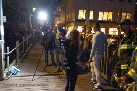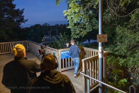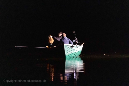 Derweil auf dem See: Als nun einer der jungen Angler einen Müllsack aus dem Wasser fischt, in dem ein Kopf versenkt worden war, hallte der gruselige Schrei übers Wasser. „Die Jungs machen das wirklich sehr gut“, informiert Natalie fürsorglich die Eltern der Darsteller nach jeder Szene, bis alles im Kasten ist.