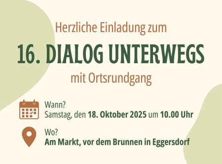 Dieser Rundgang verbindet Rückblick, Gegenwart und Ausblick. Er macht sichtbar, wo Eggersdorf herkommt, wo es heute steht und wohin es geht. Wer den Ort mit eigenen Augen erleben, verstehen und diskutieren will, ist hier genau richtig.