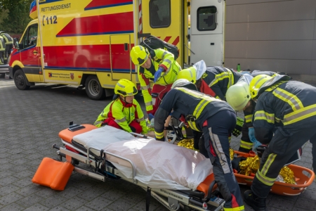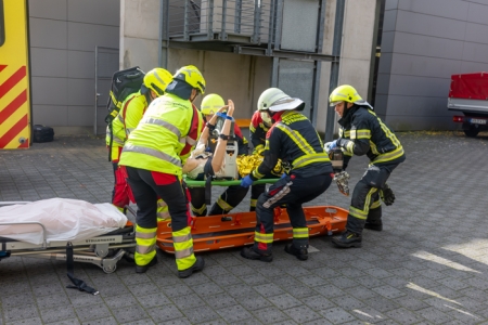 Auszubildende des dritten Lehrjahres proben den Ernstfall – Rettungsdienst Märkisch-Oderland und Feuerwehr Strausberg trainieren zusammen.