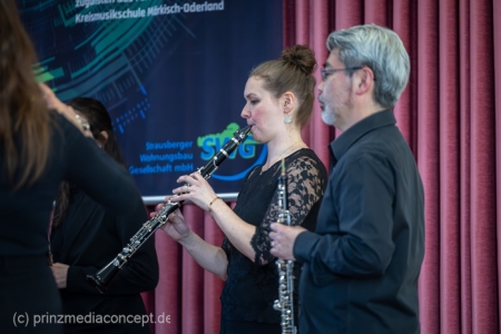 Das Brandenburgische Staatsorchester gastierte zum 18. Mal mit der Reihe Zukunftsmusik in der Kreismusikschule in Strausberg. Zu Beginn des Konzertes übergab SWG Geschäftsführer Markus Derling einen Scheck über 5.700,60 Euro an den Förderverein der Kreismusikschule, den Dr. Wilhelm Drewes entgegennahm. Der Betrag setzte sich aus dem Erlös der verkauften Eintrittskarten vergangener Konzerte zusammen.