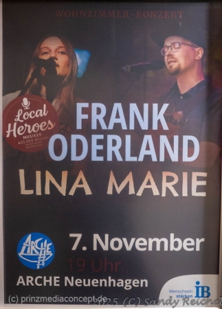 In der Konzertreihe "Local Heroes" lädt die Arche Neuenhagen ausgesuchte Künstlerinnen und Künstler aus der Region auf ihre Bühne. Am 07. November 2025 gab es ab 19:00 Uhr gleich zwei Singer/Songwriter mit eigener Musik beim IB: Lina Marie aus Vogelsdorf ist erst 18 Jahre alt und schon mehr als ihr halbes Leben im Showbizz. Ihre erste Rockband gründete sie mit acht - und auf ihrem Kaminsims stehen bereits einige Wettbewerbstrophäen unter anderem vom Bundeswettbewerb „Jugend Musiziert“ oder Brandenburgs Singer-Songwriter-Wettbewerb. Lina schreibt Ihre eigenen Songs, denen sie mit unverwechselbarer Stimmcharakteristikein ganz eigenen Chrakter verleiht. Ihren aktuellen Singles „Your Loss“ und „Without You“ sind auf allen Streamingplattformen zu hören. Mitte November veröffentlicht sie ihr erstes Album.