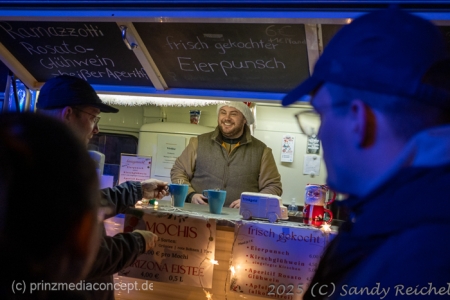Auch für das leibliche Wohl ist mit allerlei kulinarischen Leckereien gesorgt. Von Deftigem wie z.B. Bratwurst und Steak bis hin zu Donuts und kandierten Äpfeln ist für jeden Geschmack etwas dabei. Natürlich fehlen auch Glühwein und Kinderpunsch nicht.
