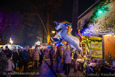 Ein buntes Bühnenprogramm und viele Attraktionen für Kinder wie z.B. Karussells, Ponyreiten und Kinderschminken runden den Weihnachtsmarkt ab.