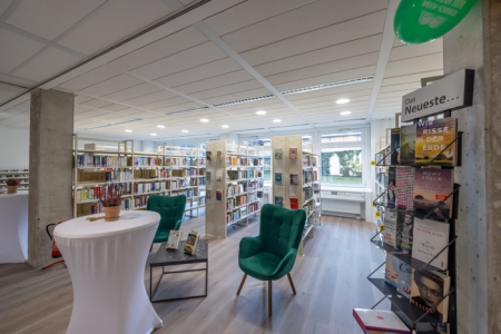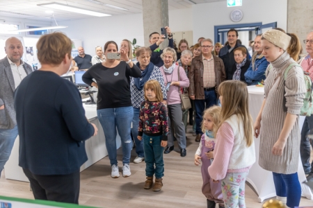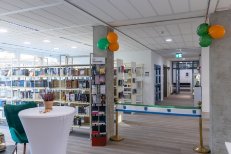 Nach dem offiziellen Teil luden die Mitarbeiter der Bibliothek zu Führungen durch die modernisierten Räumlichkeiten ein. Denn auch das Innere der Bibliothek zeigte sich in neuem Gewand: Der Kinder- und Jugendbereich, der Gamerbereich, der Veranstaltungsraum und der Ausleihbereich wurden modern ausgestattet und laden ab sofort nun zum Verweilen ein.
