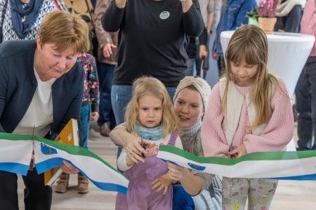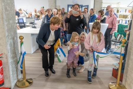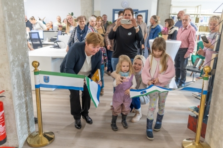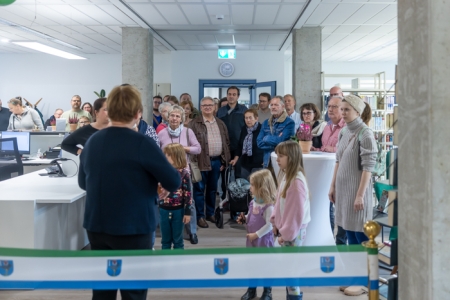 Die Eröffnung erfolgte durch Bürgermeisterin Elke Stadeler. Es wurde eine symbolische Bücherkette gebildet und das Band als Zeichen für den Neubeginn durchschnitten.