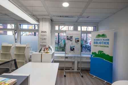 Nach dem Umzug in die modernen und barrierefreien Räumlichkeiten, öffnete die Heinrich-Mann-Bibliothek am 3. November 2025 wieder ihre Türen. Die Neueröffnung wurde am Freitag, den 7. November, von 15:00 Uhr bis 18:00 Uhr im Rahmen eines Festaktes gefeiert.