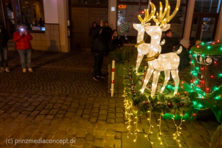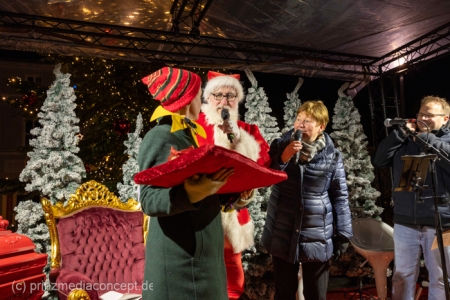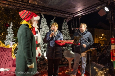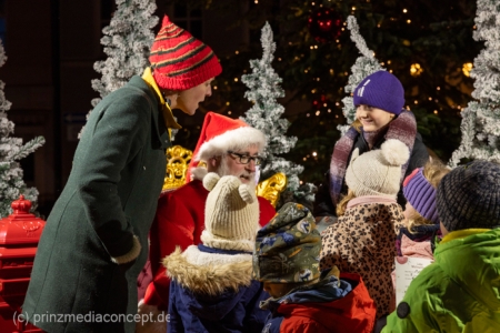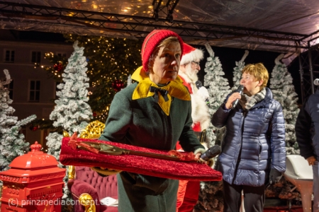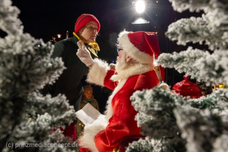 „Jetzt müssen wir mal eine Pause machen“, sagte der Weihnachtsmann, der auf dem Strausberger Markt schon unzählige Wunschzettel der Kinder, die bei ihm Schlange standen, entgegengenommen hatte. Auch das lustige Weihnachtswichtel Ibrilimeäus wirkte etwas überfordert, dabei hatte das erste Adventssingen in Strausberg am Nikolausabend unter dem mit 1.500 Meter Lichterkette und 25 glänzenden Kugeln geschmückten Weihnachtsbaum noch gar nicht angefangen.