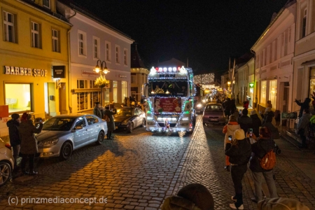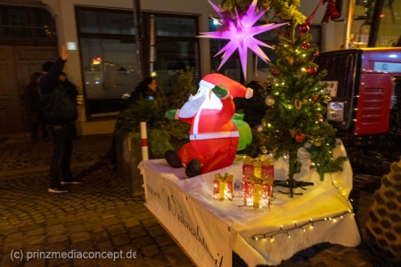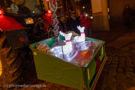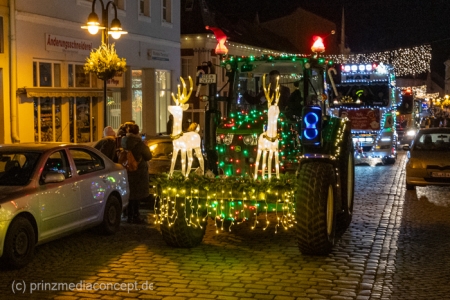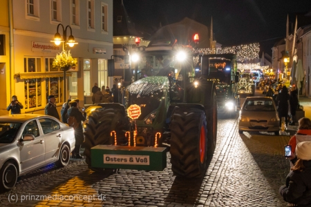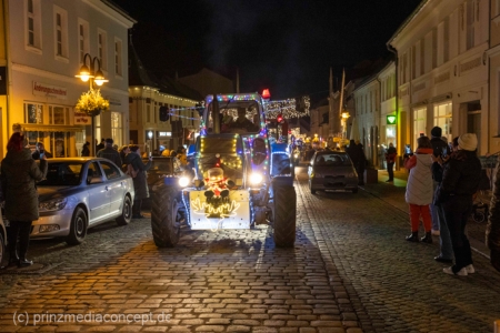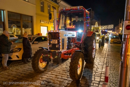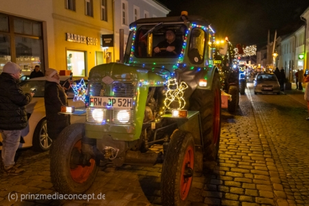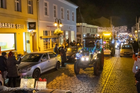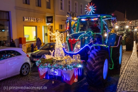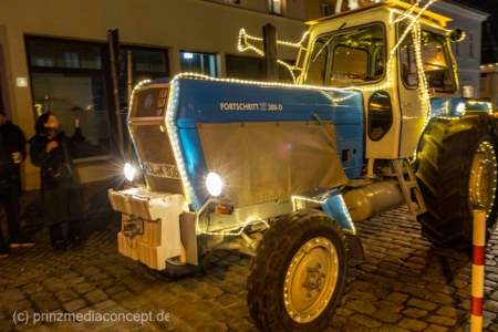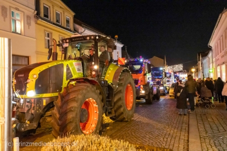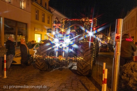 Und so hatte auch die folgende festliche Lichterfahrt der Traktoren und Maschinen aus Bliesdorf hunderte begeisterte Zuschauer am Straßenrand.