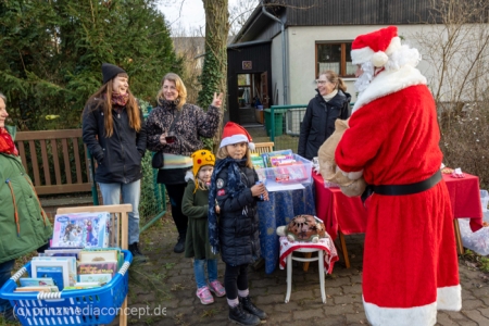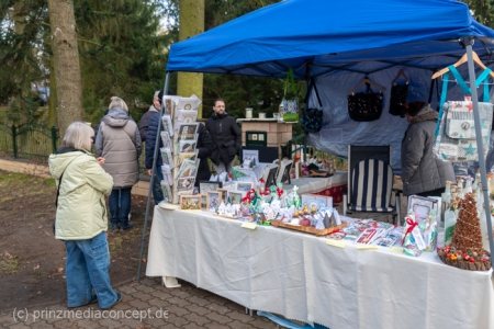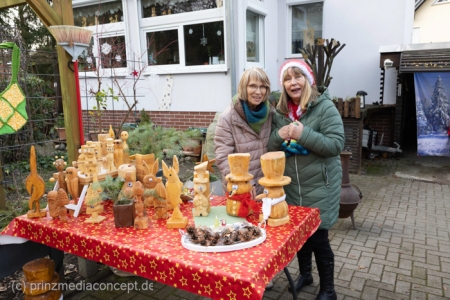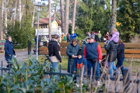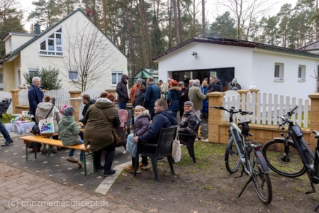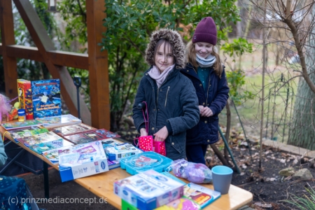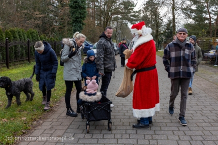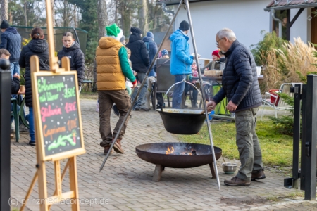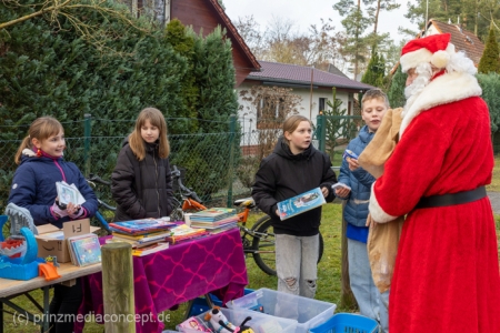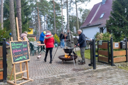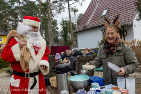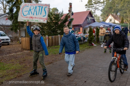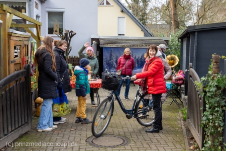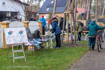 Um mal literarisch zu werden: Goethes Faust`s Sehnsucht nach „Lebensfülle und dem Gewimmel“ wurde die Bötzseemeile am 3. Advent durchaus gerecht. Hier herrschte Advents- und Weihnachtsstimmung von Anfang bis Ende. Liebevoll dekorierte Geschenke, künstlerisch Gestaltetes aus den Werkstätten – es ist immer wieder eine wunderbare Überraschung, was die Bötzseeanrainer so alles können – harrten hinter den offenen Toren auf die Kundschaft. Und die kam in Massen, was sicherlich nicht nur dem schönen Winterwetter zu verdanken war. Es hat sich herumgesprochen, dass es sich lohnt den Sonntagsspaziergang hierher zu lenken. In diesem Jahr waren es noch mehr die Kinder aus der Eggersdorfer Grundschule, die die Gelegenheit nutzten, um Geld für zu sammeln, nachdem sie sich beim Plätzchen und Muffin-Backen geübt hatten. So kamen bei Familie Kutschke, die ihr Grundstück für einen riesigen Kuchenbasar öffnete, 1100 Euro für die Klassenfahrt der 5a zusammen. Auch Familie Golyssa spendet die Einnahmen des Tages wieder an den Verein Kinderlaecheln e. V., der sich um krebskranke Kinder und deren Familien kümmert. Auch andere Familien nutzten die Gelegenheit, Gutes für Vereine zu tun. Und auch die Christophorus-Werkstätten waren wieder mit ihrem reichhaltigen Angebot dabei.
