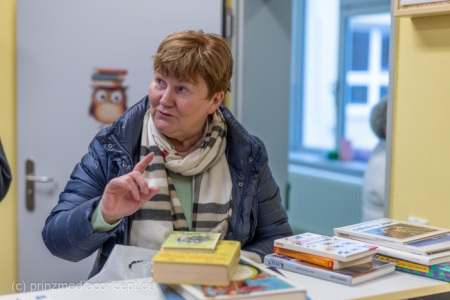 Erzieherin und Praxisanleiterin Julia Liese hob hervor, dass dass die Bibliothek ein ruhiger und angenehmer Ort ist um in den Medien und Büchern zu lesen. Lesen hilft, um den Wortschatz zu erweitern und ein Gefühl für Sprache und Ausdruck zu bekommen. Beim lesen lernen die Kinder neue Perspektiven kennen.