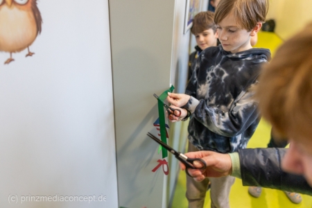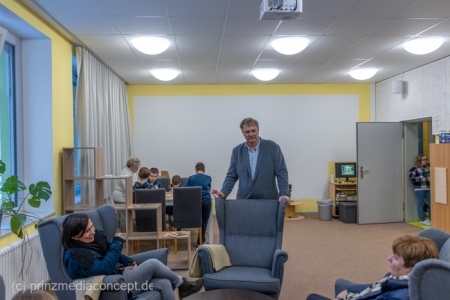 Kita Leiter Heiko Goldstein bedankte sich bei der Unterstützung aller fleißiger Helfer und Buchspender. Die hauseigene Bibliothek gibt es schon seit sieben Jahren, jetzt ist sie aber in die untere Etage gezogen und es konnten neue Regale aufgestellt werden. Er ist auch stolz auf die etwa 1.300 Medien die den Kindern zur Verfügung stehen.