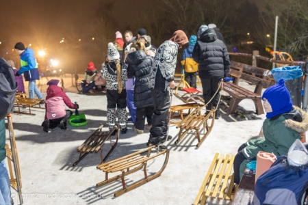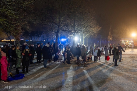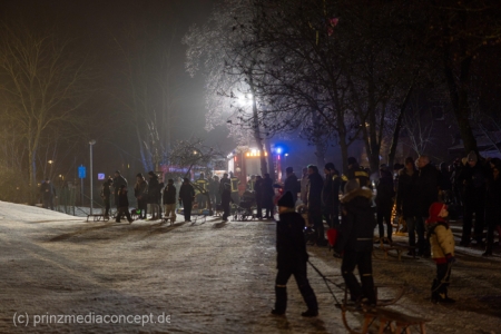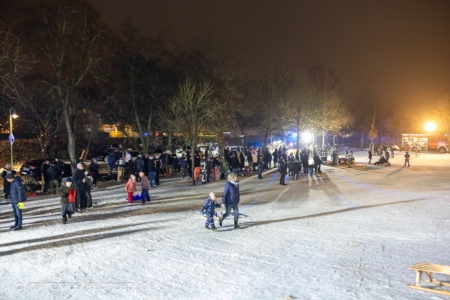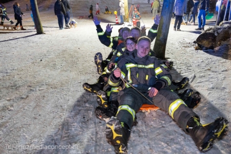 Beide Ortswehren – Eggersdorf und Petershagen – haben zu diesem Abend im Schnee eingeladen. „Wir waren kürzlich schon mal hier rodeln, aber dann ist es dunkel geworden und es war vorbei mit dem Spaß“, heißt es aus der Familie Gansewendt. Der Feuerwehrmann und Zuständige für die Öffentlichkeitsarbeit John-Paul Gansewendt hatte dann die Idee mit passender Technik sowie Beleuchtung und 20 Kameraden und Kameradinnen zum 1. Rodelabend einzuladen. „Das war zwar das erste Mal, aber garantiert nicht das letzte Mal“, sind er sich und die Kameraden einig. Und so geht es immer wieder hinauf auf den genau dafür passenden Hügel und mit Karacho wieder hinab. Nicht nur Kinder, Eltern und Großeltern haben ihren Spaß, sondern auch die Feuerwehrleute. „Wenn wir etwas was für die Öffentlichkeit tun, dann machen wir natürlich mit“, sagt der Feuerwehrmann, der versichert, dass die Einsatzbereitschaft trotz des fröhlichen Abenteuers natürlich gewährt sei. Aufsehen erregend sind demzufolge ihre Abfahrten mit dem großen Eisretter oder der – ausrangierten – Schleifkorbtrage.