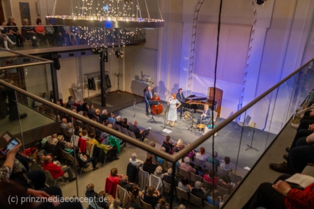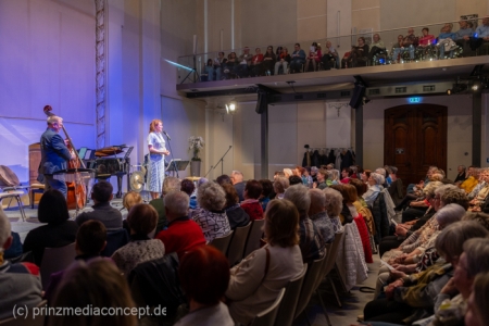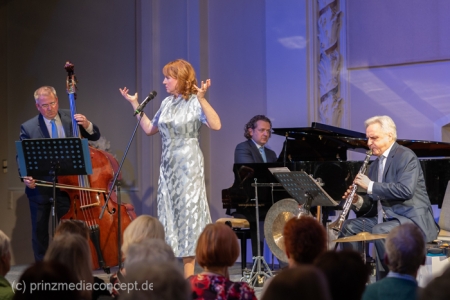 Im Mittelpunkt stand die Sängerin Winnie Böwe, die gemeinsam mit Matthias Glander (Klarinette), Alf Moser (Kontrabass) und Matthias Samuil (Klavier) die Bühne betrat. Das Konzert verstand sich als musikalische Hommage an starke Frauenfiguren der 1920er Jahre – und zugleich als beschwingter Auftakt in den Frühling. Ein kultureller Frauentag-Nachmittag, der Nostalgie und Lebenslust verband.