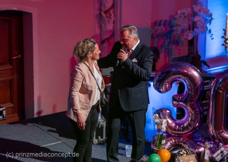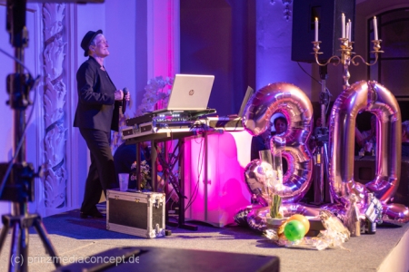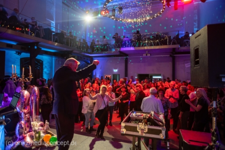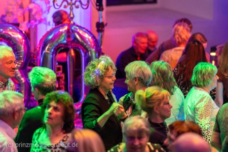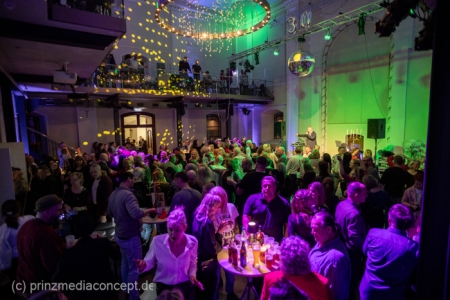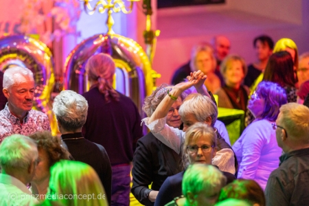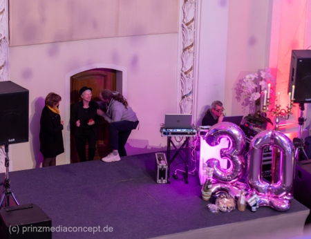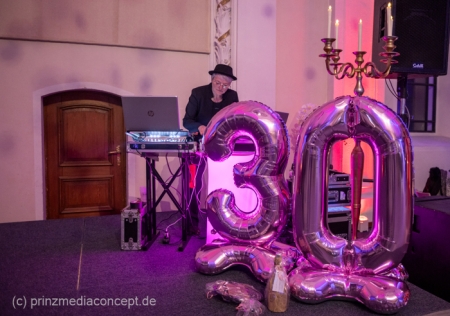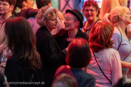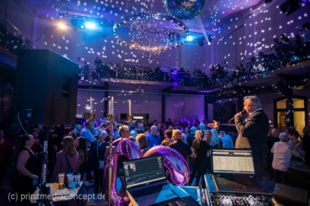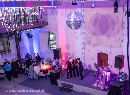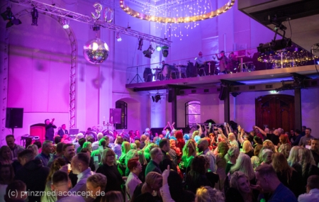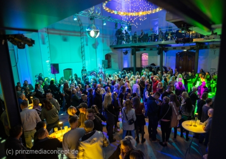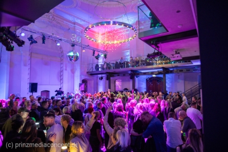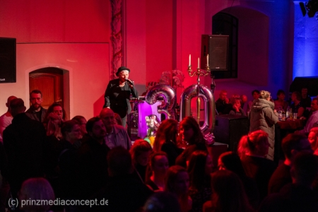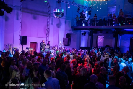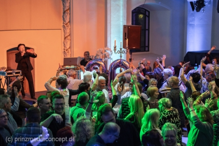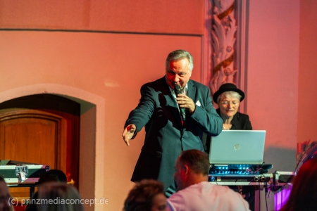 Ab 20:00 Uhr sorgte sie mit einem abwechslungsreichen Musikmix aus Partyhits, Klassikern, Disco und Schlager für beste Stimmung. Als besonderes Extra stand ein Roland-Kaiser-Double auf der Bühne und brachte mit bekannten Songs echtes Schlager-Feeling in die historische Kulisse der Schlosskirche. Ob Mitsingen, Tanzen oder einfach Wiedersehen und Feiern – der Abend war ganz auf das Publikum zugeschnitten, das wußte, wie man eine gute Party genießt. Das Team vom Schlossgut sorgte für die richtigen Drinks.