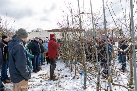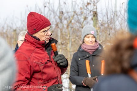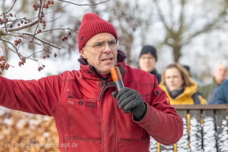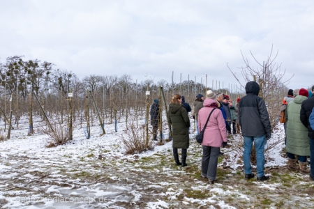 Wer jedes Jahr wieder vor seinem Obstbaum im Garten steht und nicht so recht weiß, welchen der vielen Äste er nun abschneiden soll, der war am Samstag, 14.02.26 herzlich nach Wesendahl eingeladen. Bei einem geführten Spaziergang durch die Obstanlagen vom Bio Apfelhof Müller wurden Grundlagen des Obstbaumschnitts erläutert und viele Fragen der Besucher geklärt.