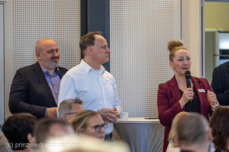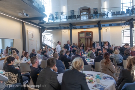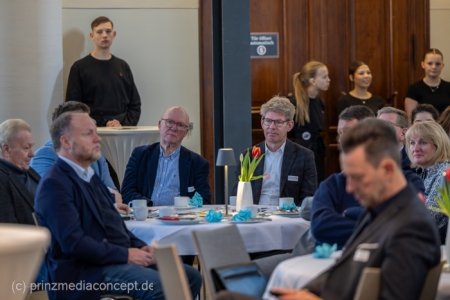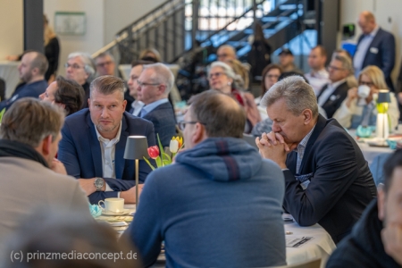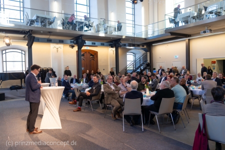 HWK Hauptgeschäftsführer Frank Ecker stellte fest, dass es der KFZ Branche gut und der Nahrungsmittelwirtschaft nicht so gut gehe und der Wohnungsbau stagniere. Das Handwerk hat also viele Themen. Viele Betriebe halten die Lage aus und entlassen erstmal nicht. Die Handwerkskammer hat in den letzten 10 Jahren etwa zwölf Prozent ihrer Mitgliedsbetriebe verloren. Ungefähr die Hälfte aller Betriebe haben Inhaber mit einem Alter über 55 Jahren. Auch hier muss einiges geschehen. Die überbordende Bürokratie hält viele junge Menschen von der Aufnahme einer selbständigen Tätigkeit ab.