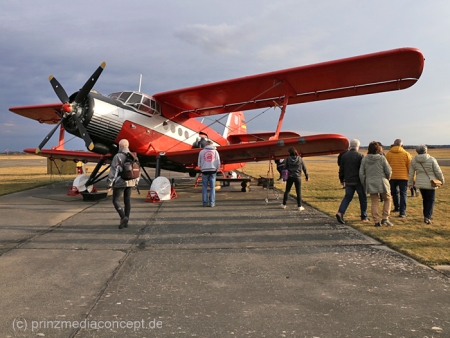 Horst Prommersberger, der die Führung mit Ruhe und Fachwissen leitete, erklärt: "Der gewaltige Doppeldecker, von vielen einfach „Anna“ genannt, flog erstmals 1947 und gilt mit geschätzten rund 18.000 gebauten Exemplaren als einer der meistproduzierten Flugzeugtypen der Welt und und einige davon sind auch heute noch in Ländern wie Russland, Osteuropa, Asien und Afrika als robuste Mehrzweckflugzeuge (Fracht, Personen, Landwirtschaft) im Einsatz! Mit ihrem kräftigen Sternmotor und den markanten Doppeldeckerflügeln konnte sie selbst von kurzen Grasbahnen starten."