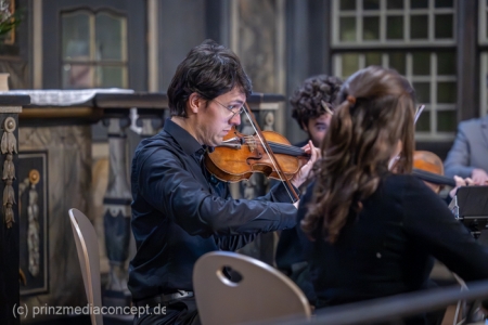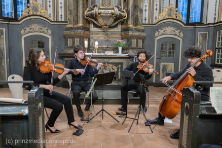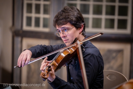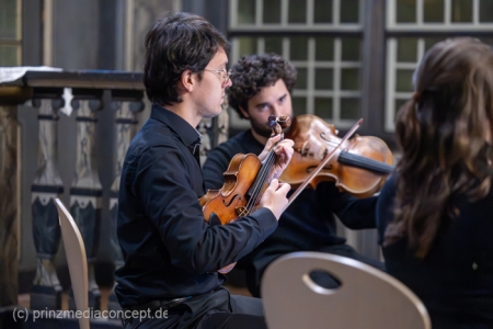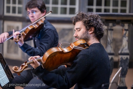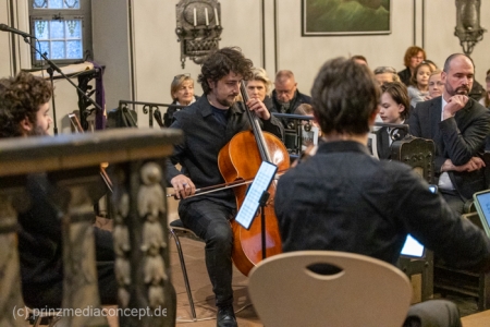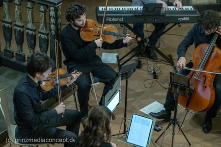Kein großes Dirigieren wie im Fernsehen, sondern eher so ein vorsichtiges Herantasten. Ein bisschen Mut, ein bisschen Unsicherheit. Und genau das trägt durch den Raum. Das Viatores Quartett bleibt ruhig, aufmerksam. Geht mit. Fängt auf. Man merkt schon jetzt, wie sich das Publikum verändert hat im Laufe des Abends. Am Anfang noch neugierig. Jetzt eher drin und mit dabei.