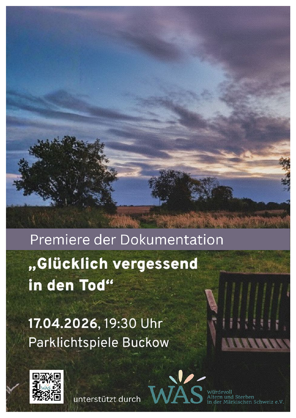 Erleben Sie am Freitag, den 17. April 2026 ab 19:30 Uhr wird in den Parklichtspielen Buckow der Dokumentarfilm zum Thema Sterben mit Demenz mit dem Titel „Glücklich vergessend in den Tod“ gezeigt.