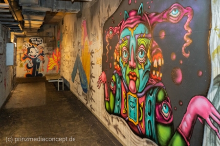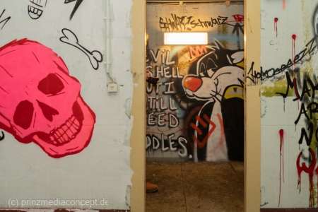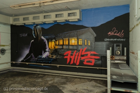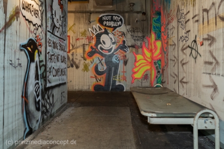 Gleichzeitig hat die Transformation bereits begonnen. Einige Räume sind heute mit modernen Wandkunstwerken gefüllt, die dem grauen Beton neues Leben einhauchen. Wieder andere Ecken des Bunkers erzählen mit ihren verbliebenen Dekorationen von früheren Partys und Feiern der vergangenen Jahre – eine ganz eigene Schicht der Geschichte, die zeigt, wie sich die Menschen diesen Raum bereits angeeignet haben.