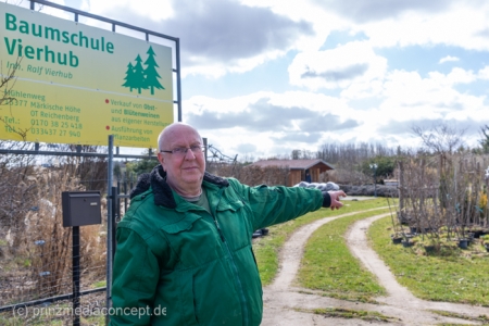 Das Pflanzen von Gehölzen auf Fremdgrundstücken ist ein Service des Hauses Vierhub. Die Baumschule ist jährlich vom 15. März bis 23. Dezember geöffnet. Weitere Infos erhalten Sie telefonisch unter 033437 27 940.