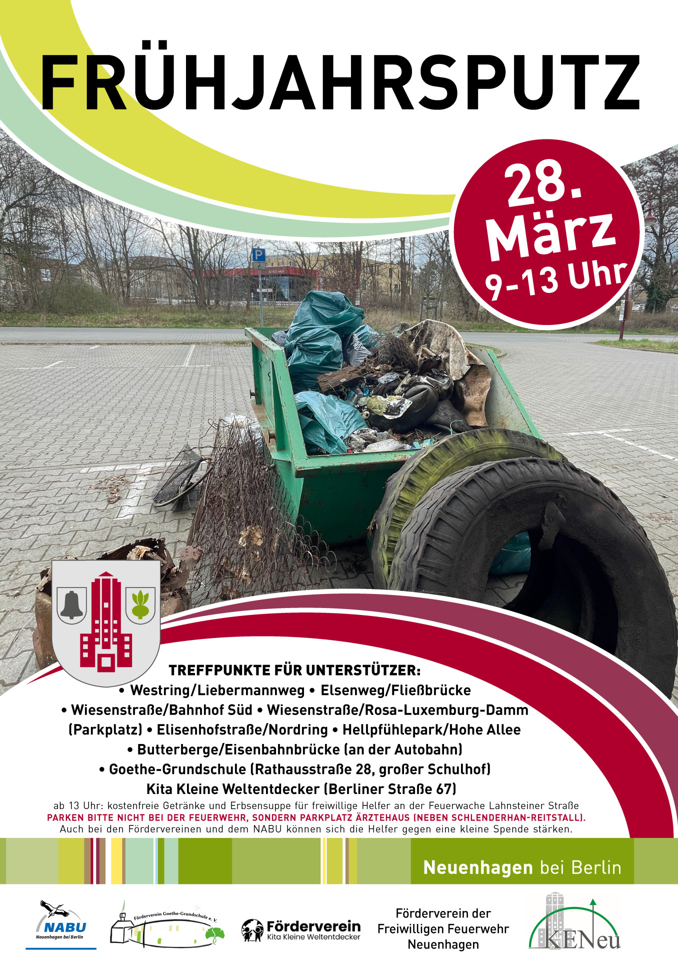 Die Gemeinde ruft zum großen Frühjahrsputz auf – gemeinsam mit dem NABU sowie den Fördervereinen Kita Kleine Weltentdecker und Goethe Grundschule. Von 9 bis 13 Uhr befreien wir ausgewählte Bereiche unserer Gemeinde von Müll und sorgen so für ein sauberes, lebenswertes Umfeld.
