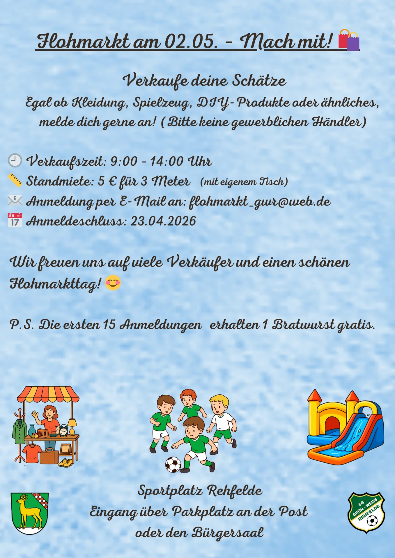 Zusätzlich zum Flohmarkt begeistern wir mit einem Bambini Fußballturnier und einer Hüpfburgenwelt.